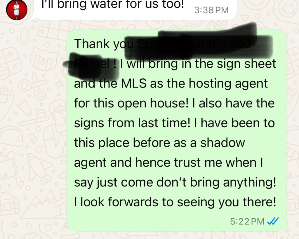 Then I think Wednesday and Thursday Night I just couldn’t sleep at night. I don’t know what happened. but I slept pretty late thinking and running different scenarios in my mind. And I think on Thursday one of the agents put in our group chat if there was a Spanish speaking agent willing to host his open house this weekend. Now this is the part I want you to read carefully.