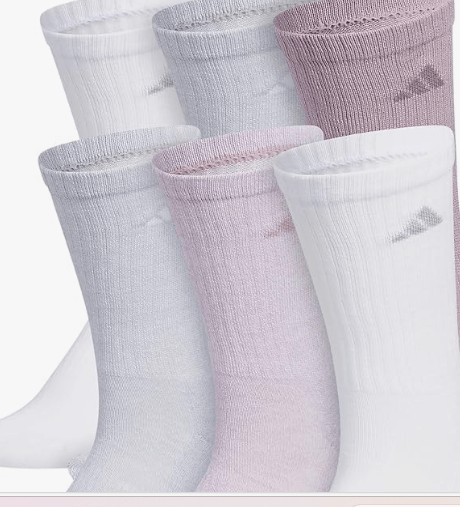 8. adidas Women’s Athletic Cushioned Crew Socks with Arch Support, 6-Pack, Durable, Moisture-Wicking