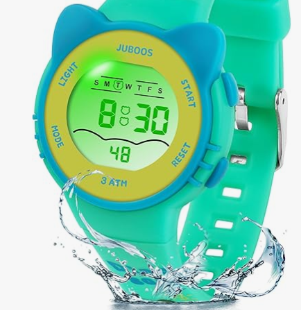 17. Juboos Kid’s Digital Watch for Boys and Girls, Waterproof LCD Digital Sports Child Wirstwatch with 7 Color LED Lights, Stopwatch, Alarm